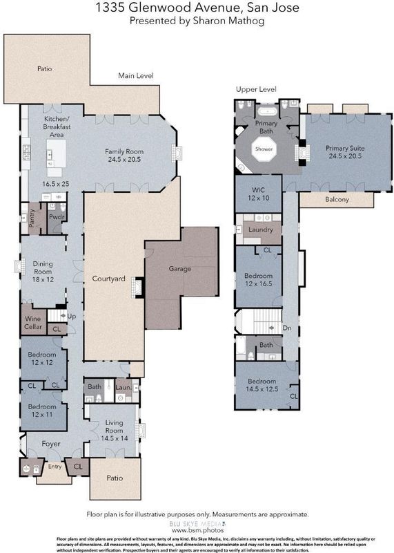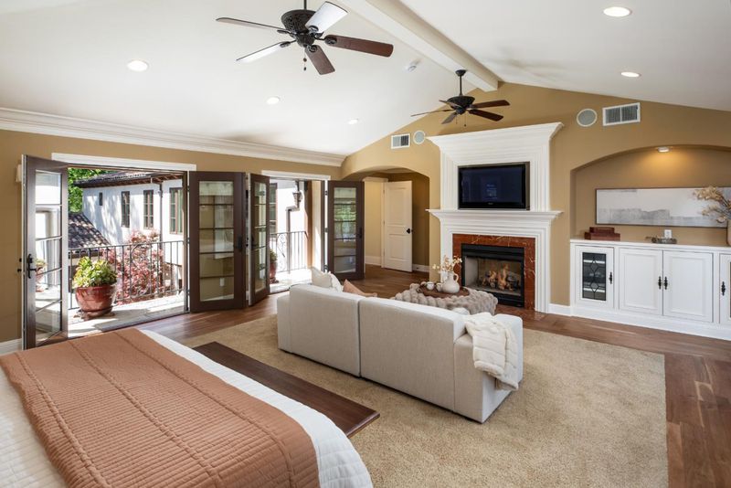 This custom-built Mediterranean estate is a rare expression of craftsmanship and elegance, set on a quiet Willow Glen tree-lined street. Thoughtfully designed floor plan offers both grand entertaining and elevated living. High ceilings, exquisite crown molding, and striking wrought-iron detailing establish a commanding architectural presence. Formal living, dining, and family rooms flow beautifully, anchored by a courtyard that fills the home with light and creates a seamless indoor-outdoor connection. Five fireplaces throughout add warmth and character. The chef's kitchen is generously scaled and impeccably appointed with top-of-the-line appliances. The butler's pantry and wine room by the formal dining room elevate hosting to an art form. Two bedrooms on the main level, full bath with steam shower, and a powder room are ideal for guests or multi-generational living. Upstairs, the expansive primary suite serves as a private retreat with a beautifully appointed bathroom. Two large bedrooms, full bath, plus an elegant laundry room complete the upper level. Additional features include two sound systems, two laundry rooms, and two HVAC systems. Located moments from Willow Glen's vibrant downtown, this residence impeccable in execution, elegant in detail, and timeless in presence.