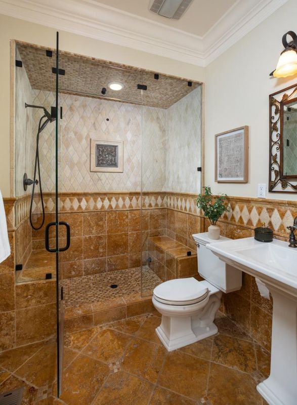- Bidet, Full on Ground Floor, Half on Ground Floor, Marble, Shower over Tub - 1, Skylight, Stall Shower - 2+, Steam Shower, Tub in Primary Bedroom, Tubs - 2+