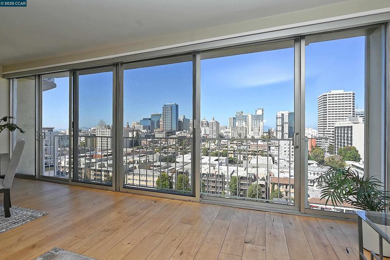 Experience one of Oakland’s premier addresses at the Lakeside Regency, built of steel & concrete in 1968 & designed by Michael Marx, AIA—an apprentice of Frank Lloyd Wright. This mid-century modern gem spans 1,384 square feet on a single-level 18th-floor plan, offering an ideal separation of private & public areas. A floor-to-ceiling wall of windows in the living area - an entertainer’s dream with panoramic Oakland skyline views. This residence features a beautifully appointed kitchen equipped with an electric cooktop, dishwasher, oven, microwave and refrigerator, making meal preparation a breeze. There are two spacious bedrooms and two remodeled bathrooms, one with a tub and one with dual sinks. The home boasts stunning hardwood flooring throughout, adding a touch of elegance and ease of maintenance. For your convenience, there is a dedicated laundry area. Building amenities offer the best in urban living: 24-hour door service, a shared mezzanine, a roof deck, & a clubhouse. Your unit comes with one deeded parking space & an additional storage closet. Pets welcome. And with Lake Chalet Restaurant, Oakland Museum, Lake Merritt BART, & more just steps away, you’ll have everything you need right at your doorstep!