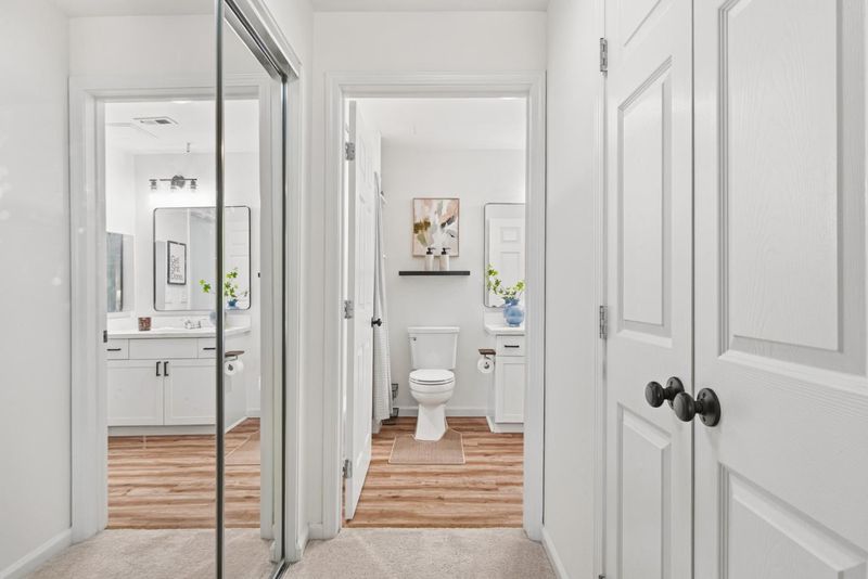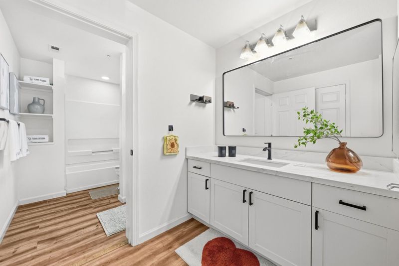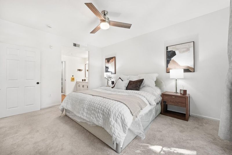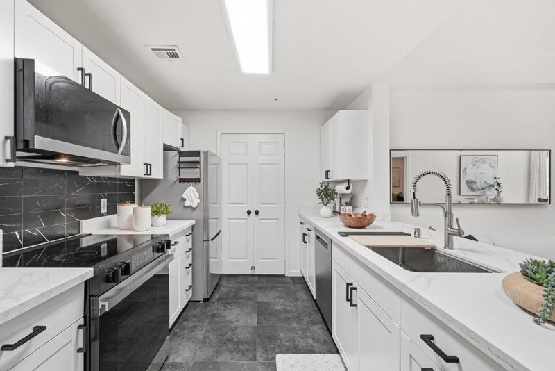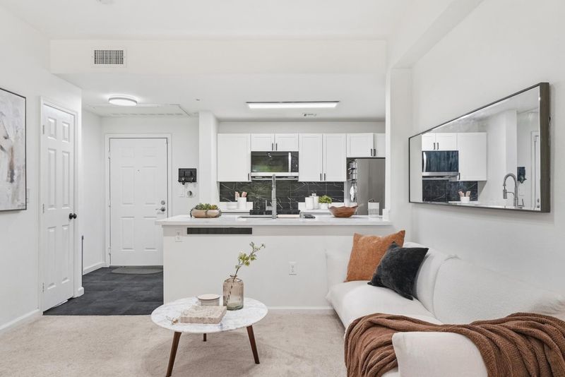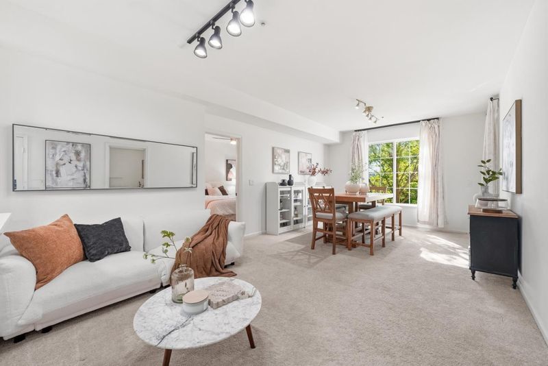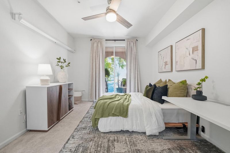 Newly remodeled ground-level condo featuring two private entrances, one from the community street and another with direct access through the garage, offering exceptional convenience and privacy. The bright open floor plan showcases high ceilings and expansive windows that fill the home with abundant natural light. The upgraded kitchen boasts granite countertops, crisp white cabinetry, and brand-new stainless steel appliances, including Bosch dishwasher and Samsung stove, creating a stylish and highly functional space. The home is further enhanced with whole-house smart switches, adding modern comfort and control. Two spacious en-suite bedrooms provide comfort and flexibility, each featuring granite vanity tops and walk-in closets, while one suite also includes an additional stall shower. Additional highlights include in-unit laundry, Ring security system, and two reserved underground parking spaces. Ideally located within walking distance to nearby park and just minutes from Downtown San Jose, San Jose International Airport, major tech campuses, Caltrain, VTA, shopping, dining, and convenient access to Hwy 101, 87, and 880.