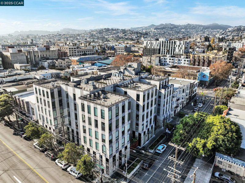 Enjoy sweeping Downtown, Bay, and Twin Peaks views from a rare private balcony for dining, drinks, game playing or simply just to relax. Fabulous modern top-floor studio at the "Fifteen Fifteen", designed by renowned architect Stanley Saitowitz. This stylish light-filled end unit features 9’ ceilings, wide-plank hardwood floors, Bosch/Thermador appliances, Caesarstone countertops, SOZO Studio cabinetry, and a spa-like bath with Grohe fixtures and Italian porcelain flooring. Additional highlights include central A/C, in-unit laundry, a large storage unit, and a secure, professionally managed building. Built in 2014. Prime Mission District location close to restaurants, cafés, shops, galleries, transit, and easy freeway access. Available fully furnished.