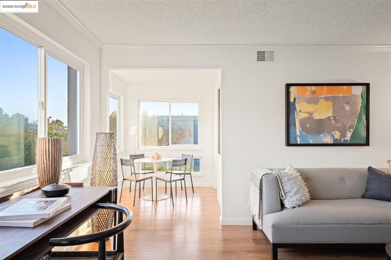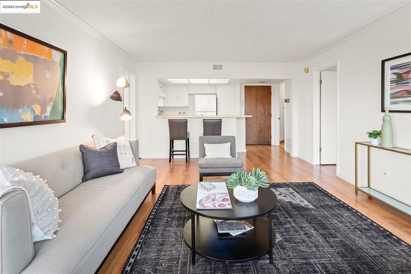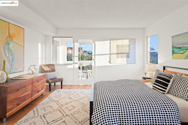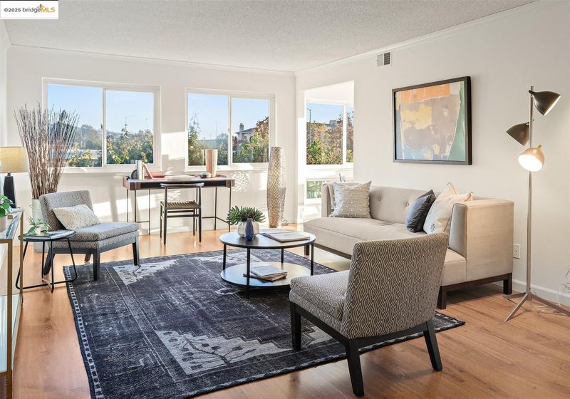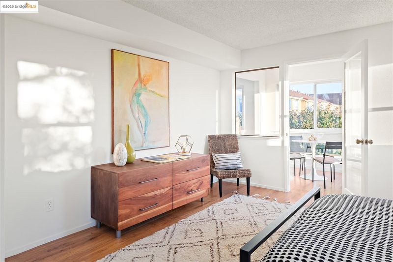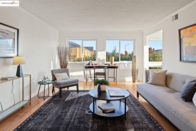Second-floor corner unit, drenched in sunlight with large windows. The open floor plan gives a spacious feel and has a dual primary suite configuration, offering nice separation of spaces for occupants. Laminate floors in the living/dining and bedrooms. The bathrooms have separate vanities and tub over shower areas and new lights (2025). Sizeable bedrooms with large windows. Convenient in-unit washer and dryer, detached 1-car garage parking, and an additional assigned parking place with the unit number. The association has a clubhouse and pool, as well as an area with barbecue grills for outside gatherings. Close proximity to several shopping plazas, one conveniently located right across the street. Easy access to Highway 80 and public transportation.
