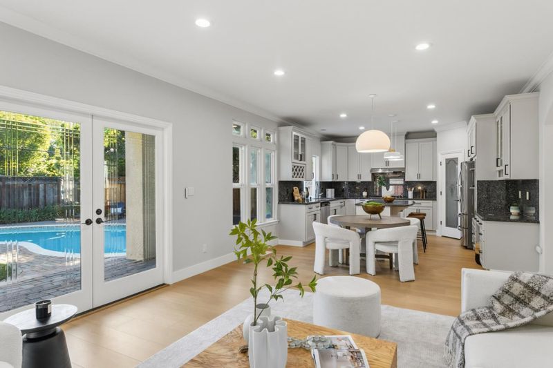 Nestled on a picturesque, tree-lined street, this masterfully redesigned residence offers the perfect blend of elegance and modern efficiency. From the moment you cross the threshold through the Mahogany double doors, youll notice a home designed with meticulous attention to detail. The expansive 2,376 sq. ft. layout features brand-new flooring and fresh designer paint, illuminated by a bespoke interior lighting package. The open-concept living and dining areas flow effortlessly, creating an ideal space for both intimate family evenings and grand entertaining.