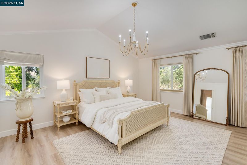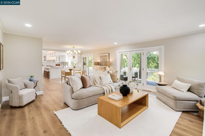 Tucked away above the El Pintado Loop, this east-facing home sits on an oversized lot in a private enclave of just a few residences, offering exceptional privacy and hillside views just minutes from downtown Danville. Recently updated, the home features a remodeled kitchen with quartz countertops, tile backsplash, premium appliances and a seamless flow into the light-filled family room. A spacious dining area and French doors connecting the living and family rooms create an ideal layout for entertaining. The home includes a spacious primary suite with a large walk-in shower and soaking tub, along with three additional secondary bedrooms and a hall bathroom with dual sink vanity. Enjoy a serene outdoor setting with a an expansive covered deck, mature trees, and beautiful sunset views. Conveniently located near top-rated schools, shopping, dining, scenic trails, and major commute routes.