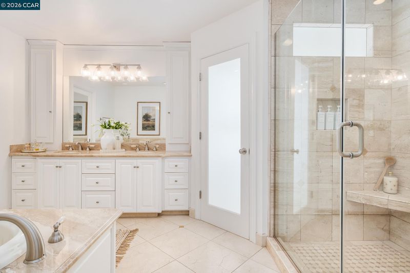 - Shower Over Tub, Skylight(s), Solid Surface, Double Vanity