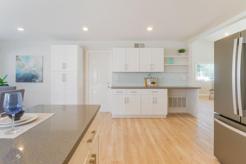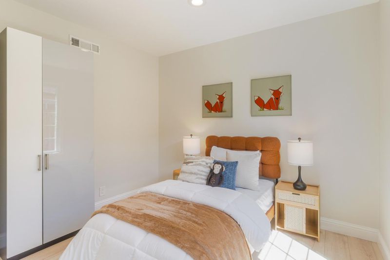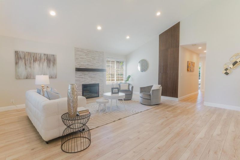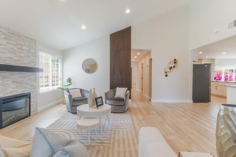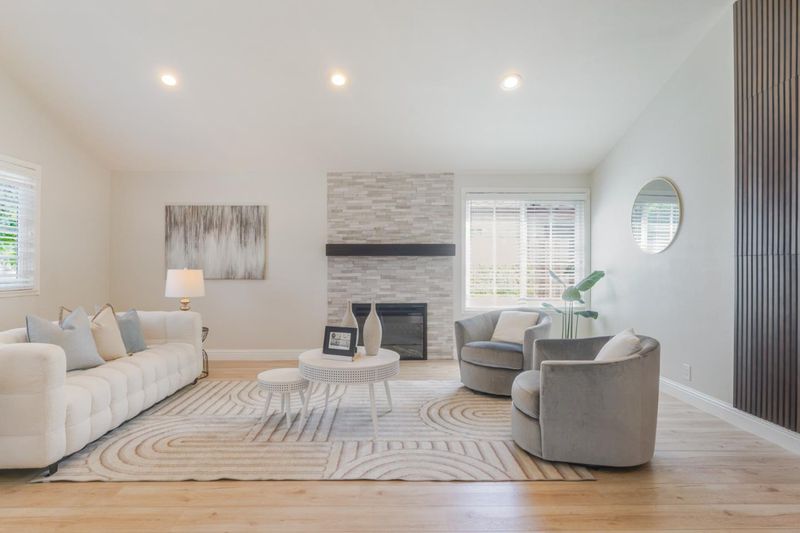 From the moment you pull up, the curb appeal, lush landscaping, and clean modern style make it clear this one is something special. Just shy of 1,500 square feet, this beautifully remodeled 3-bedroom, 2-bath home is stunning from top to bottom, with quartz countertops, shaker cabinetry with added storage, sleek black stainless appliances including a gas range, warm laminate flooring, an electric fireplace, and fresh paint, hardware, and trim throughout. The floor plan offers the best of both worlds, with an open layout that features two large connected living spaces ideal for everyday living and entertaining, while the bedrooms are tucked toward the back of the home for added privacy. The bedrooms are generously sized and thoughtfully finished with extra armoires for storage, while both bathrooms have been fully remodeled with a spa-like feel that gives the home an elevated, comfortable vibe. Set on nearly 6,000 square feet, the backyard offers a great mix of beauty and function with lush yet low-maintenance landscaping in both the front and rear. A covered paver patio, accessible from both the primary suite and the dining area, creates the perfect setup for entertaining, relaxing, and easy indoor-outdoor living. Great commute location for Cal Train or 85/101 Easy Tech Job Access
