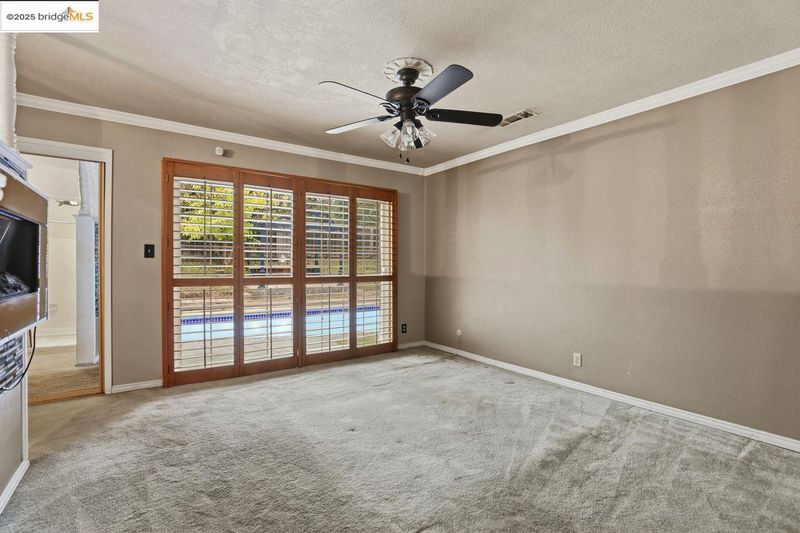 Located in the well-established Gardeners Point neighborhood, this charming single-story home offers wonderful potential with a beautiful front yard and a great backyard retreat complete with a pool. Featuring 3 bedrooms, 2 bathrooms, and 1,545 sq ft, this home blends comfort, space, and an opportunity to personalize to your taste. Step inside to a large sunken living room, formal dining area, and a gigantic eat-in kitchen ideal for daily living and hosting. Plantation window treatments paired with nice double-pane windows provide natural light, energy efficiency, and timeless style throughout. The layout flows conveniently to the backyard, creating easy indoor-outdoor enjoyment. The spacious primary bedroom offers direct yard access, enhancing privacy and relaxation. Wall-to-wall carpet and generous room sizes add to the inviting feel of the home. Outside, ain iron fully fenced yard with great curb appeal frames the standout feature—a refreshing pool, perfect for entertaining, family fun, or quiet weekends at home. With just a bit of TLC, this property offers an excellent opportunity to build equity in an area known for pride of ownership, nearby shopping, everyday essentials, and convenient access to highways and main streets.