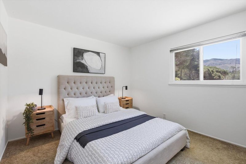 Located in Pacifica's sunny Park Pacifica neighborhood, this bright, beautifully maintained 3 bed, 2 bath town home showcases a generous and thoughtful floor plan in peaceful, serene surroundings. The light-filled living room - featuring vaulted ceiling and double-height windows - opens to a private patio, perfect for both gardening and entertaining friends and family, with a picturesque greenbelt beyond. The kitchen boasts marble countertops with a breakfast bar with several new appliances. The downstairs includes one bedroom and one bath, while the upstairs includes the primary bedroom with an updated en suite bathroom and an additional guest bedroom. The washer and dryer closet is located off the private patio, and a garage for one vehicle completes this serene residence conveniently located near parks, hiking trails, schools, shops, and a short drive to the beach.