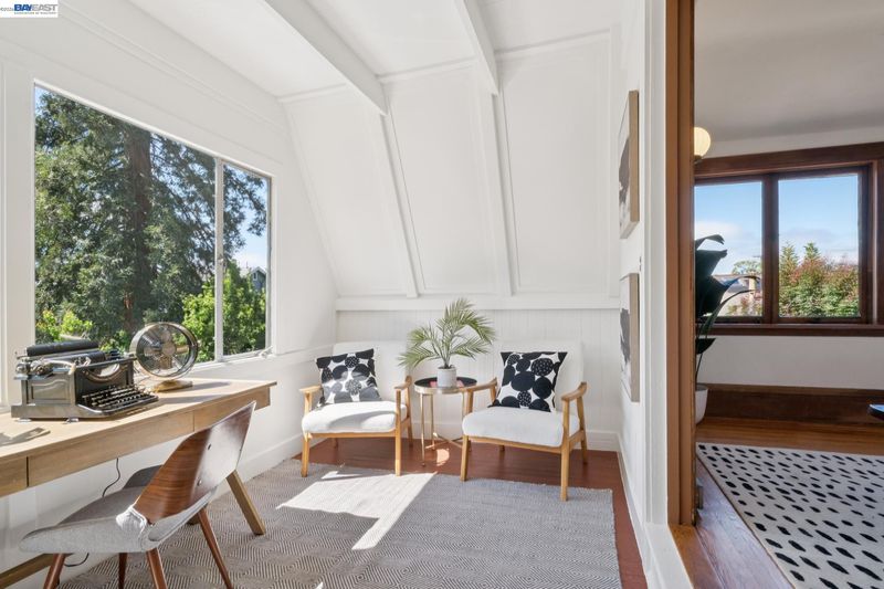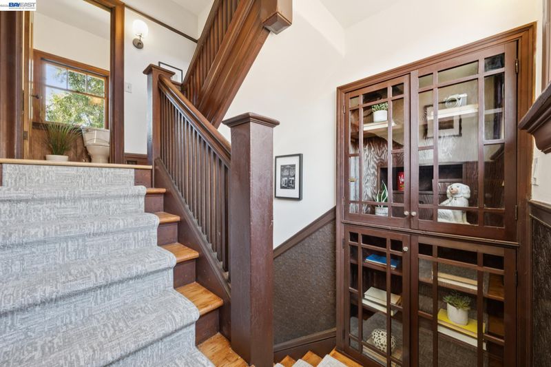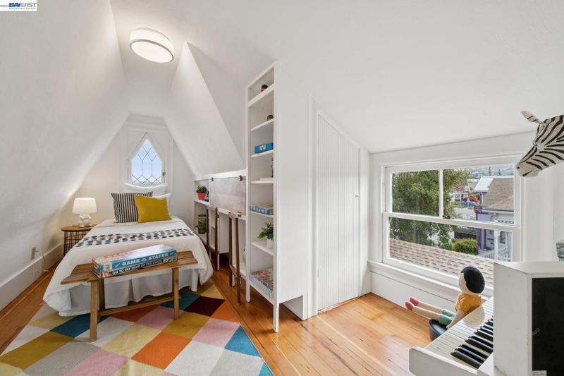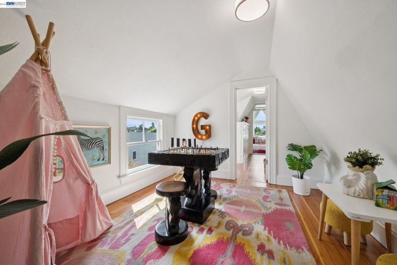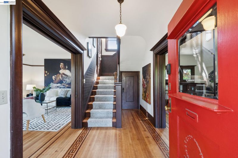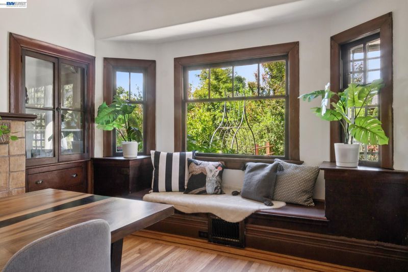 Set on a generous double lot shaded by towering redwoods and threaded with fruit trees, this 4+BD/3BA Victorian Farmhouse unfolds across three levels and 2,697 SQFT of rich architectural detail: coved and beamed ceilings, leaded glass, picture railings, inlaid hardwood floors, and wainscoting. This historic home was built in 1898 by John MacGregor, whose daughter Helen grew up inside these rooms before going on to serve as secretary to Governor Earl Warren. Pause at the threshold, then move through rooms that reward attention — formal front living room, dining room anchored by a fireplace, architecture that has only grown more sure of itself with age. The heart of the home is a sunny eat-in kitchen with new appliances, countertops, and cabinets, opening to a vast deck and backyard with room to entertain, garden, and expand. A full bath and laundry complete the first floor. Three bedrooms and two baths occupy the second; two more flexible rooms and playful dormers await on the third. Plentiful off-street parking and storage. Ashby BART is nearby and if the lore is true, pieces of BART's 12th Street and 19th Street stations are already inside, tiled onto the walls by a former owner with ties to the system. Over a century of remarkable history. Bring what’s next.