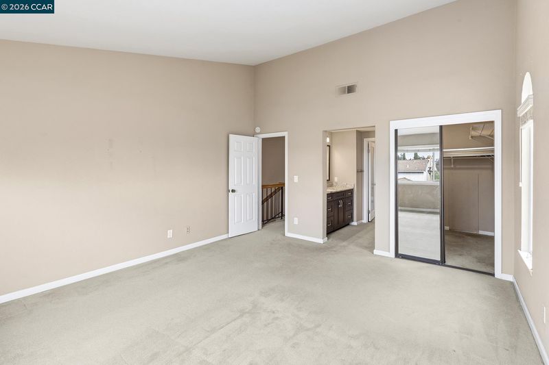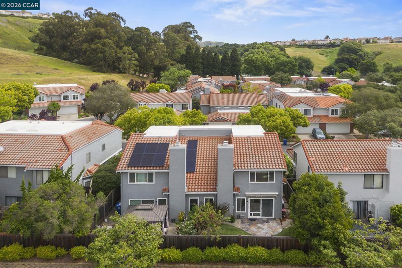 Experience the perfect blend of tranquility and luxury in the highly coveted Palomares Hills community. This stunning end-unit home, characterized by soaring ceilings and an abundance of natural light, offers an elevated lifestyle in a serene, rolling-hill setting. The spacious living and dining areas flow seamlessly together, creating an airy atmosphere perfect for everything from elegant entertaining to cozy movie nights. For your guests the main floor offers a half bath just off the living room. At the heart of the home is a stylishly updated kitchen, featuring sleek granite countertops and stainless steel appliances. The floor plan is thoughtfully designed with two primary ensuite bedrooms, both boasting modernized bathrooms. The main suite serves as a private retreat, complete with a walk-in closet and a luxurious, oversized shower. Step outside to a private, low-maintenance oasis. The fenced backyard features premium synthetic grass and a stone patio, offering a peaceful space for outdoor relaxation. Beyond your front door, you are just steps away from world-class amenities, including a resort-style pool, clubhouse, tennis and pickleball courts, basketball and baseball fields, and scenic hiking trails. With the award-winning Jensen Ranch Elementary just down the road and quick access to BART and major freeways, this home offers the rare combination of a peaceful retreat and an effortless commute. Modern, updated, and perfectly positioned—this one truly has it all.