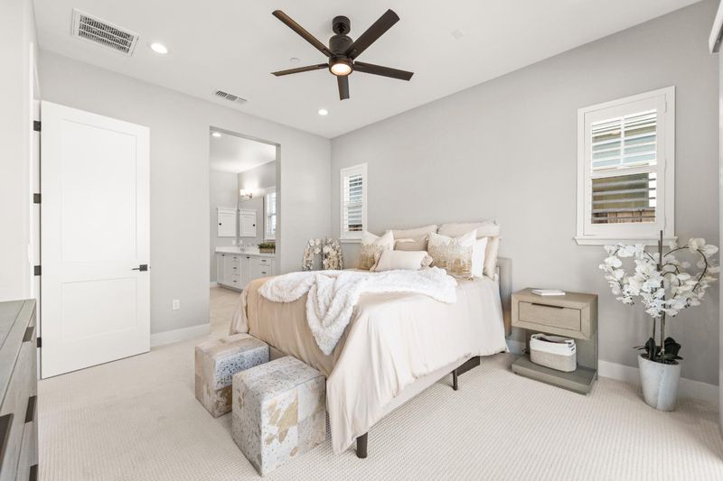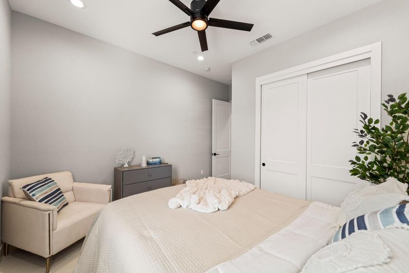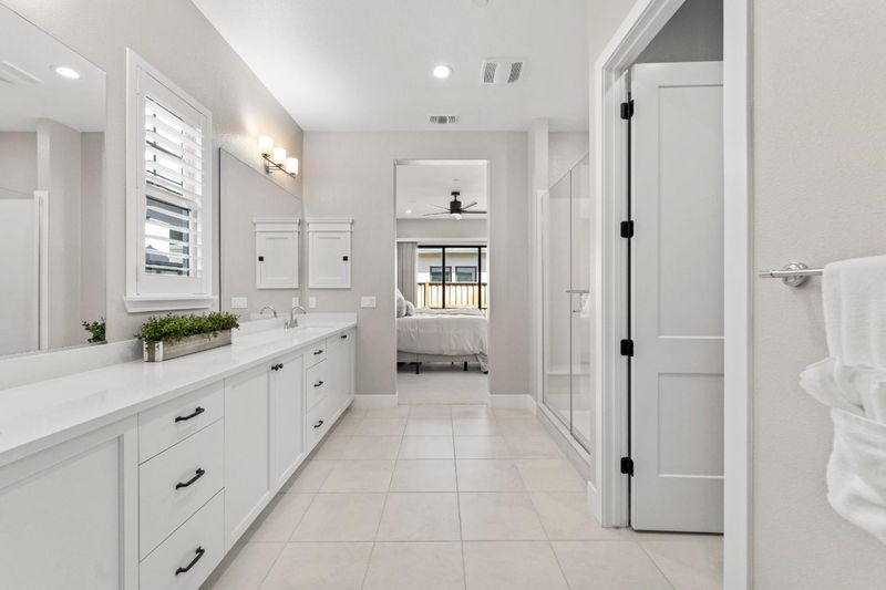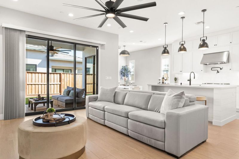 Welcome to 1871 Snowflower Place, the only resale Verdi Modern Farmhouse in the gated 55+ Regency at Tracy Lakes community. This fully upgraded single-story home offers 1,880 sq ft of refined living and features over $250,000 in seller and builder upgrades. Highlights include a gourmet kitchen with a 42-inch Jenn-Air refrigerator, quartz countertops, shiplap-wrapped island, custom lighting, and professional-grade appliances. The open-concept great room features floor-to-ceiling glass sliders, a temperature-controlled fireplace, and integrated sound system. Additional upgrades include custom shiplap accents, a luxurious primary suite with spa-inspired bath and custom walk-in closet, shutters throughout, a finished low-maintenance backyard with extended privacy fencing, epoxy garage with EV charger, and owned solar panels. Seller is offering buyer incentives. Enjoy resort-style amenities including clubhouse, pools, fitness and yoga studios, pickleball and bocce courts, scenic lakes, and walking trails. Welcome home!