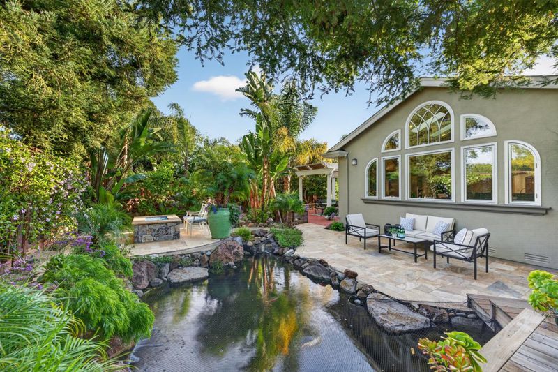 This stunning executive five-bedroom, four-bath residence offers an exceptional blend of space, natural light, and refined functionality. The expansive chefs kitchen serves as the heart of the home, featuring custom white oak cabinetry, a large breakfast bar, and generous workspace, perfect for both everyday living and effortless entertaining. Soaring ceilings and multiple skylights throughout fill the home with abundant natural light, creating an open and airy atmosphere throughout. The spacious primary suite is a true retreat, complete with a spa-like bath featuring a soaking tub, dual-sink vanity, dedicated beauty station, and a separate double shower. Step outside to a beautifully designed tropical backyard oasis, showcasing a tranquil koi pond and multiple lounge and entertaining areas, ideal for hosting gatherings or enjoying peaceful outdoor living. Additional highlights include a two-car garage, ample storage with dedicated sheds, and solar power for enhanced energy efficiency and low monthly utilities. Ideally located near top-rated schools, shopping, commuter routes, and major employment centers, this home offers the perfect balance of luxury, comfort, and convenience. Come see for yourself this home is something special!